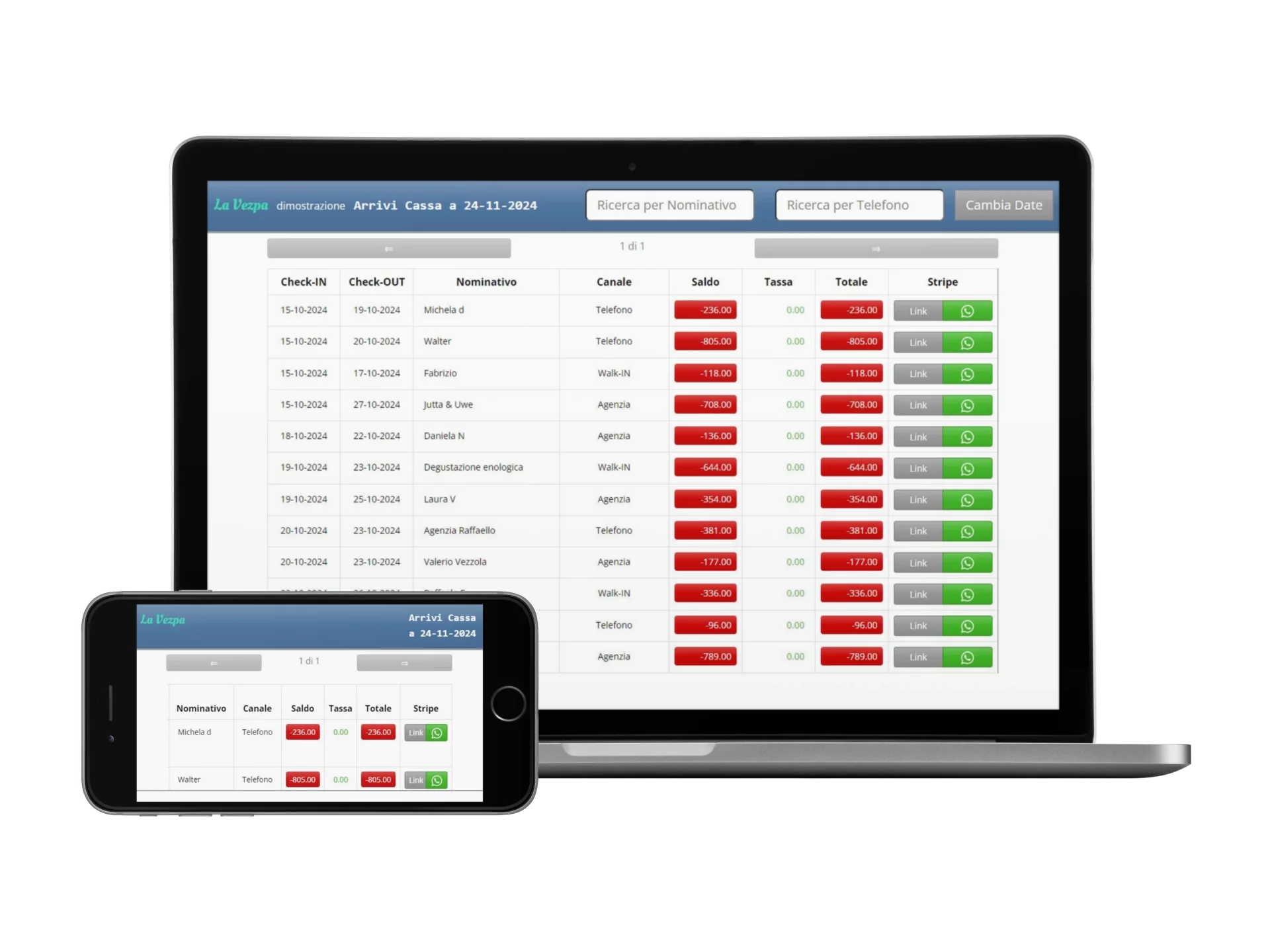 Tieni sotto controllo le prenotazioni e le OTA. Aggiorna prezzi e disponibilità in ogni momento.